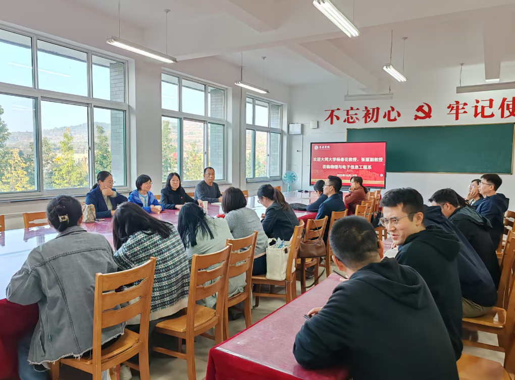 下午17:00,系领导及骨干教师与大同大学物理与电子科学学院副院长杨春花教授、张丽副教授举行座谈会。双方围绕学科建设、人才培养及科研合作等议题深入交流,为后续校际协同发展奠定坚实基础。