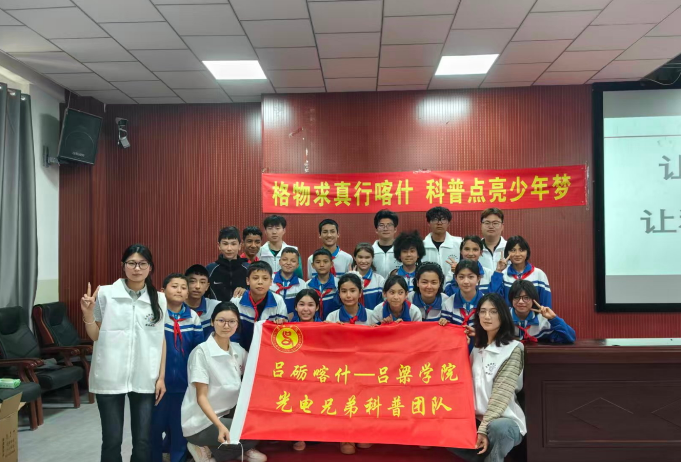 为深入贯彻落实国家教育援疆战略,铸牢中华民族共同体意识,延伸“吕砺喀什”教育实习品牌内涵,深化校地教育协同育人,2026年4月9日,吕梁学院组织物理与电子信息工程系光电兄弟科普团队首次走进喀什市第二十二中学,开展“格物求真行喀什,科普点亮少年梦”科普进校园活动,用趣味物理实验为边疆少年打开科学探索的大门。本次活动由吕梁学院教务部主办,喀什市教育局联办,物理与电子信息工程系承办。